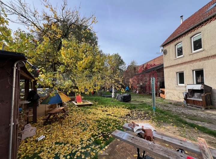 Das rund 836 m² große Grundstück liegt idyllisch und blickgeschützt an einem Dorfplatz. Der alte Baumbestand sorgt für ein naturnahes Ambiente und bietet an heißen Tagen Schatten und Privatsphäre. Auf dem Grundstück befindet sich zudem ein charmantes, jedoch sanierungsbedürftiges Nebengebäude aus Backstein, welches derzeit als Werkstatt und Abstellraum genutzt wird – ideal für Handwerker, Hobbybastler oder als künftiger Ausbaureserve.
