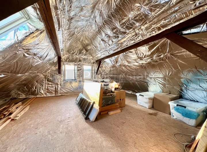 Das Dachgeschoss eröffnet dabei weiteres Ausbaupotenzial für individuelle Wohnträume: zusätzliche Schlafräume, ein Hobbybereich, ein Atelier oder ein Studio – alles ist möglich. Die Leitungen für ein kleines Badezimmer/ Gäste-WC sind bereits vorbereitet. Die zusätzlich mögliche Wohnfläche beträgt etwa 40m², womit das Haus insgesamt über eine Wohnfläche von 185m² verfügen würde.