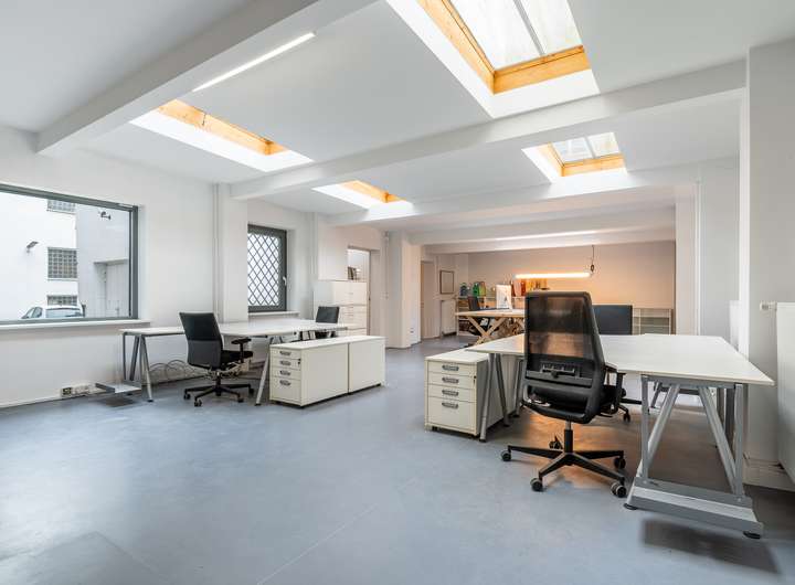 - Dreigeteilter Gewerbebereich mit Einzelbüros, Küchenbereich und Atelier-Loft