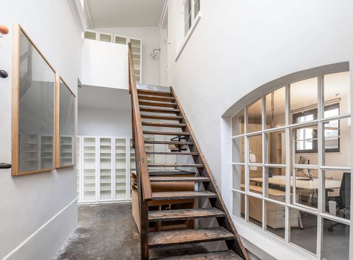 Der rückwärtige Gebäudeteil besteht aus einem dreigeschossigen Studioturm mit Galerie, Einzelbüros und weiteren Arbeits- oder Lagerflächen. Besonderheiten des hinteren Teils sind der separate Lasteneingang für zum Beispiel Anlieferungen in Verbund mit dem Wegerecht und die Zufahrtmöglichkeit für große und hohe Fahrzeuge.