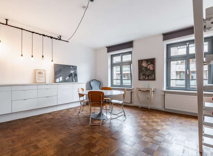 Im 1. und 2. Ober- sowie im Dachgeschoss des Haupthauses befinden sich zwei separate Wohneinheiten mit jeweils einem Grundbuch. Im Treppenhaus besteht die Möglichkeit, beide Wohnungen vom Rest des Hauses durch eine Tür abzutrennen. Diese eignen sich somit für die Nutzung als getrennte oder als eine große Wohneinheit. Die aktuellen Einheiten bieten eine Gesamtfläche von insgesamt 127,58 m² (73,6 m² und 53,98 m²).