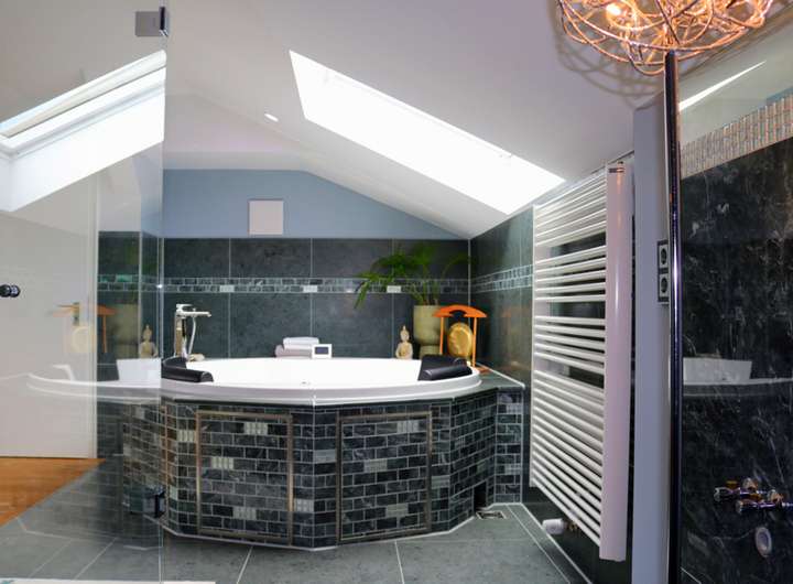 - eigener SPA/Wellnessbereich mit Sauna, großem Whirlpool, Großraumdusche, WC, Ruhebereich