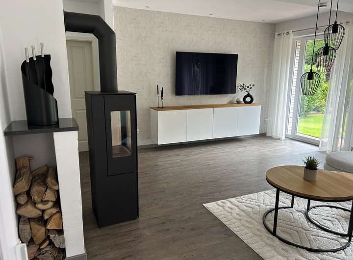 – Großzügiges Wohnzimmer mit Kamin (neu)