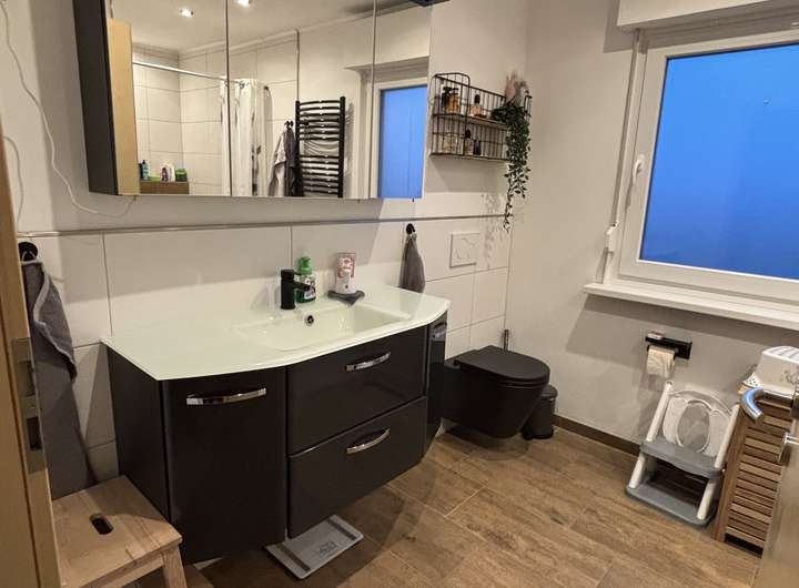 • Fußbodenheizung im Wohn-/Esszimmer, in den Kinderzimmern und im Badezimmer, Handtuchheizkörper im Bad