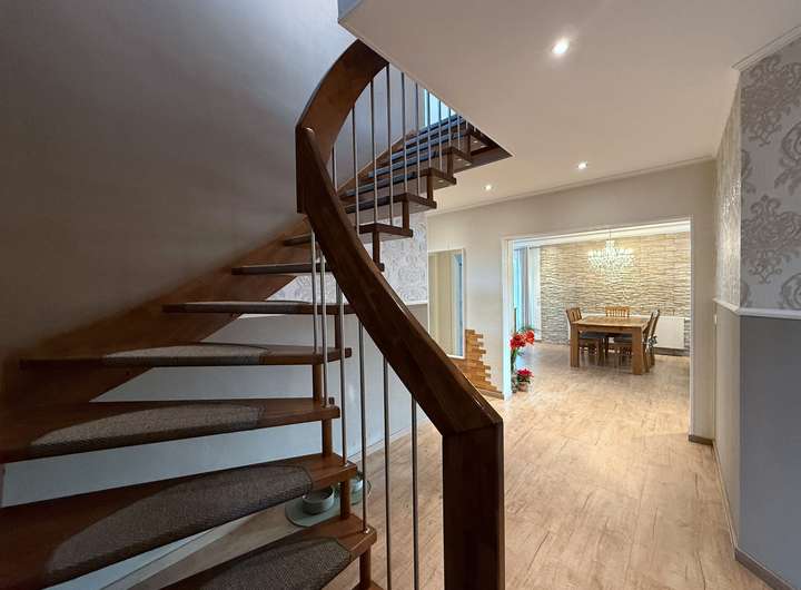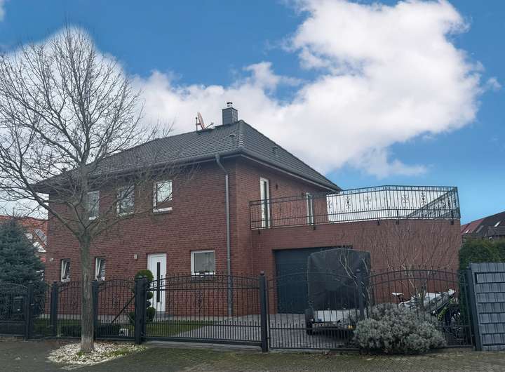Aufgrund der massiven schmiedeeisernen Zäume, breite hochwertig verklinkerte Außenwände, der Garage mit Sektionaltor und der guten Lage wirkt die Villa schon auf den ersten Blick als ein Statement für Geschmack und Qualität. Dieser gute Eindruck wird auch im Inneren der Immobilie fortgesetzt.