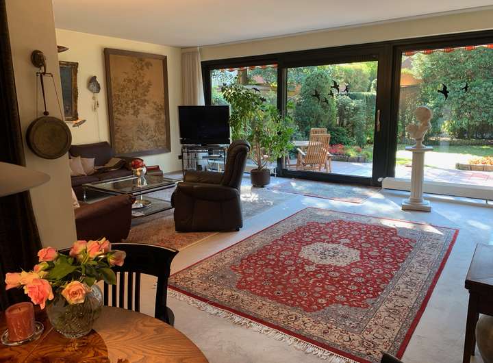 - großzügiger Wohnbereich, große 3-teilige Fensterfront (ca. 6,5 m breit) zum Süd-West-Garten