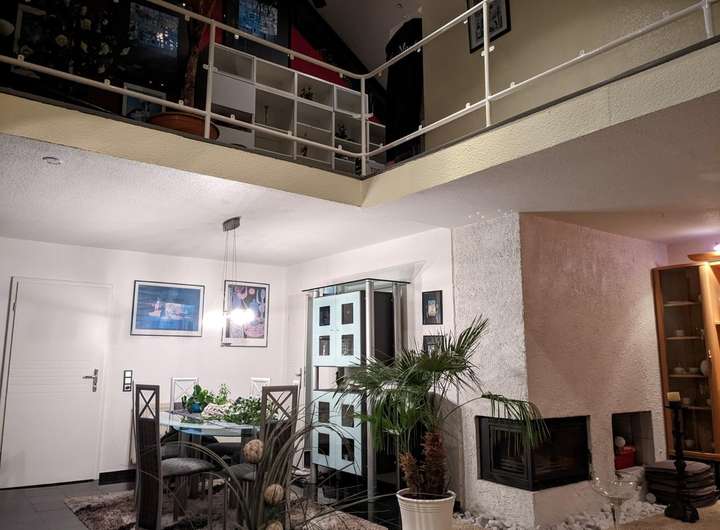 Die Einliegerwohnung mit ca.75 m2 ist über einen separaten Eingang und Parkplatz nebst Garten im Außenbereich zu erreichen. Diese ist aktuell wie folgt aufgeteilt: Im Eingangsbereich befindet sich ein kleiner Flur mit Treppe zur Wohnung. Diese ist mit einem großzügigen Wohn- und Essbereich mit moderner Einbauküche und Zugang auf einen Balkon, einem Schlafzimmer, einer Empore mit Dachfenster und einem Badezimmer mit Badewanne und Dusche ausgestattet.