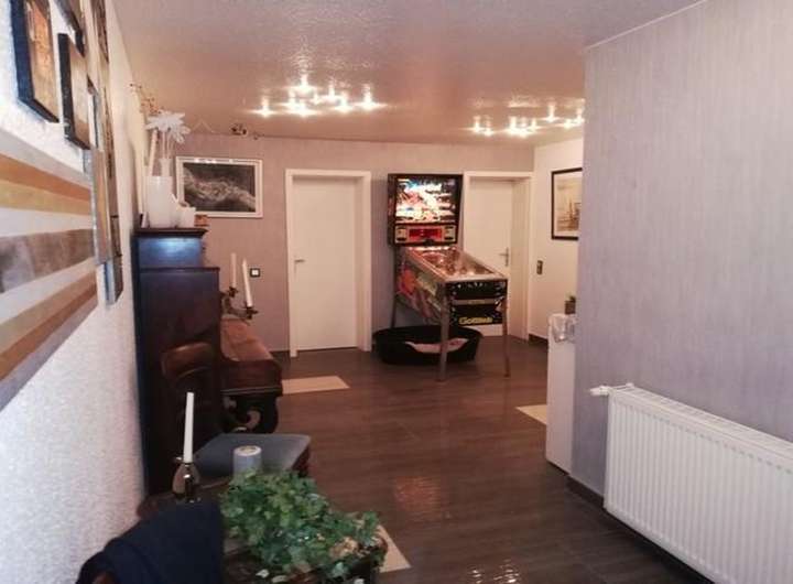 Die Einliegerwohnung lässt sich ohne großen Aufwand wieder dem Wohnhaus zuordnen. Auch eine Vergrößerung dieser Wohnung wäre ohne Weiteres möglich. Ebenfalls ist es Denkbar hier ein Gewerbe ( Versicherung, Office, Kosmetik, Nagelstudio etc) zu integrieren. Wohnen und Arbeiten unter einem Dach, dennoch gut getrennt voneinander.