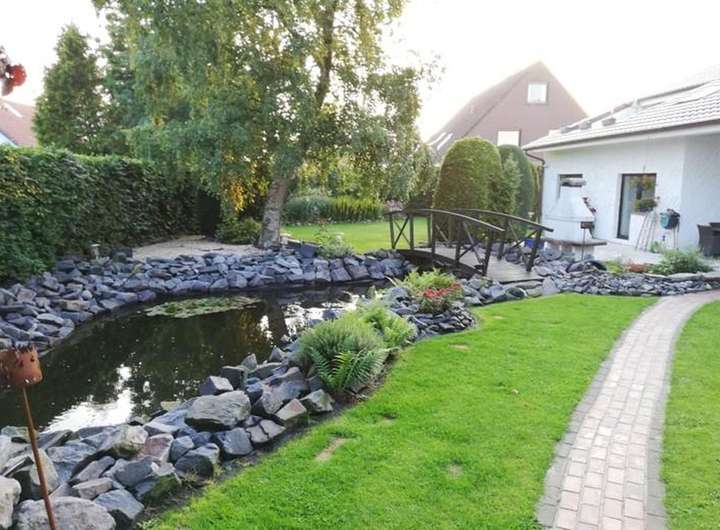 Der schöne und pflegeleicht angelegte Garten mit Teichanlage, zwei Garagen, ein weiterer Teich und ein Carport runden dieses tolle Angebot ab.