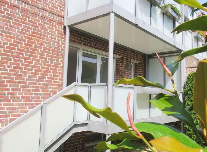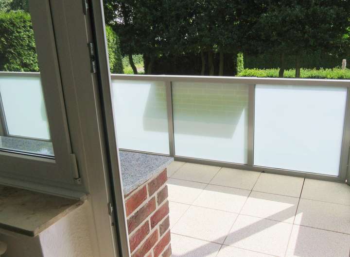 Die Wohnung verfügt über einen stattlichen modernen Süd- West-Balkon mit Milchglasbrüstung (erreichbar über das Wohnzimmer). Der sonnige Balkon ist überdacht.