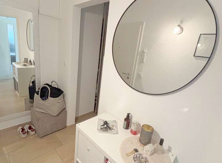 Die Böden der gesamten Wohnung haben einen ansprechenden mediterranen Fliesenbelag erhalten.
