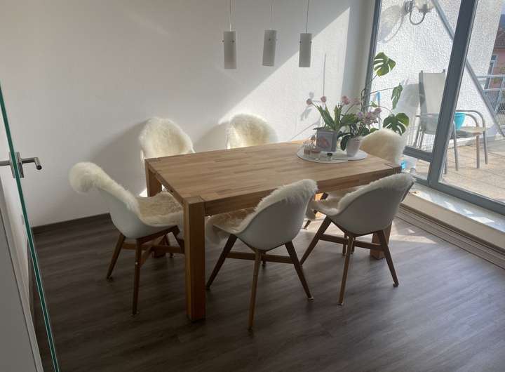 In der gesamten Wohnung ist ein moderner Vinylboden verlegt, lediglich das Badezimmer ist gefliest. Großzügige Fensterflächen sorgen in den Wohnräumen für viel Tageslicht und eine freundliche Atmosphäre. Der Balkon bietet ganztägig Sonne bis zum Sonnenuntergang und lädt zum Entspannen ein.