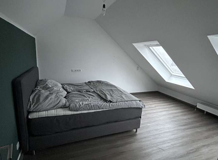 Die Wohnung wurde vor etwa fünf Jahren modernisiert, mit Ausnahme des Badezimmers. Auf der oberen Ebene befindet sich der abgetrennte Schlafbereich mit angrenzendem Abstell- bzw. Ankleideraum. Die untere Ebene bietet eine voll ausgestattete Einbauküche mit allen Elektrogeräten, die bereits in der Miete enthalten ist, ein innenliegendes Badezimmer mit Dusche und Badewanne sowie ein helles Wohnzimmer mit integriertem Essbereich.