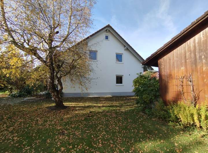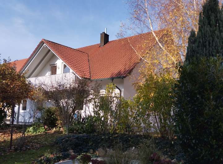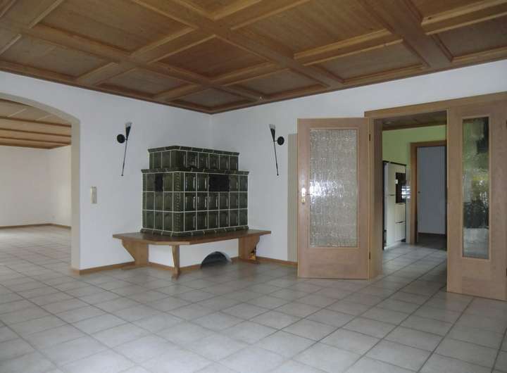 Schreiner-Holzdecke in Küche, Ess- und Wohnzimmer; Kachelofen im EG; Fußbodenheizung im EG; großes Bad; Satelliten TV; Doppelgarage mit Fernbedienung; Holzschuppen mit viel Stauraum; großer Keller;