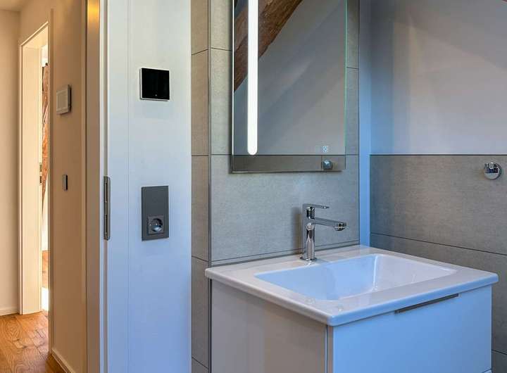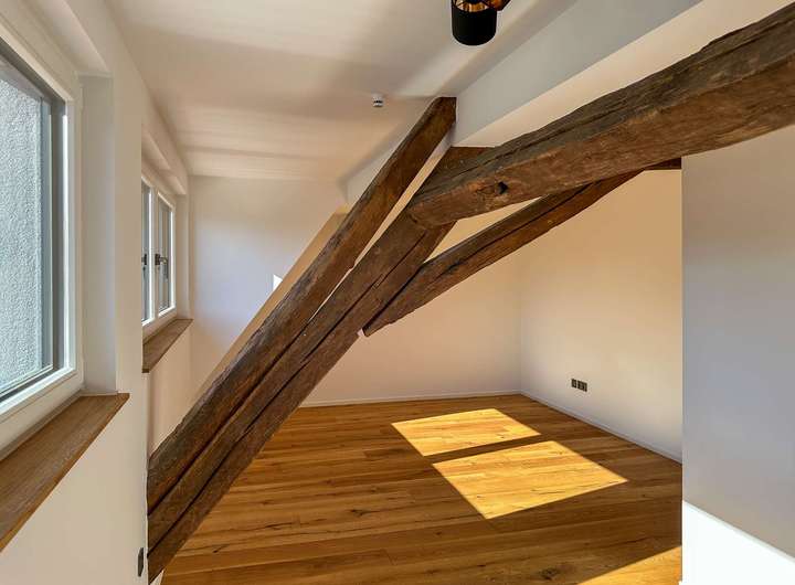 Das historische Gebäude wurde unter Berücksichtigung des Denkmalschutzes umfassend modernisiert und bietet heutigen Wohnkomfort in einem architektonisch anspruchsvollen Rahmen – ein besonderes Zuhause für Menschen mit Sinn für Qualität und Charakter.