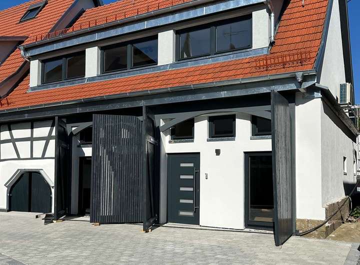 Inmitten des alten Ortskerns von Untergruppenbach, nur wenige Schritte vom Rathaus entfernt, befindet sich das denkmalgeschützte Haus Weidenmann, ein Fachwerkensemble mit Geschichte: Ursprünglich im Jahr 1793 erbaut, wurde das Gebäude 2024 mit viel Fingerspitzengefühl kernsaniert und in drei exklusive Wohnungen sowie zwei hochwertig ausgebaute Reihenhäuser umgewandelt.