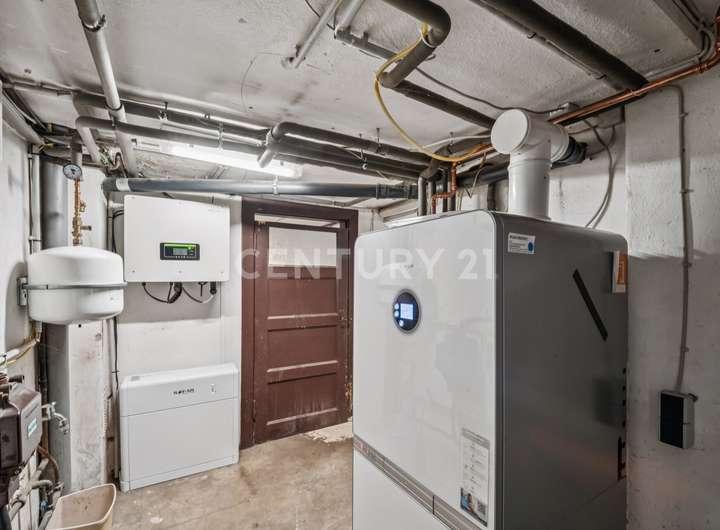 Die zentrale Gasheizung liefert in allen Etagen zuverlässige Wärme, während der Keller wertvollen Stauraum bietet.