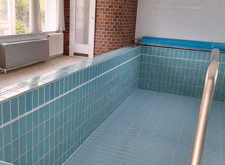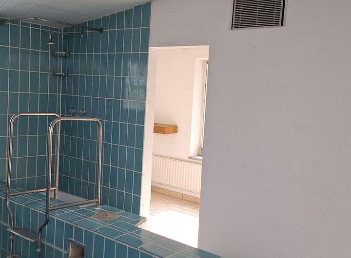 Ein Keller sorgt für zusätzlichen Stauraum. Ein besonderes Merkmal des Objekts ist die große Loggia mit offenem Kamin, die einen herrlichen Ausblick ins Grüne bietet und zu entspannten Stunden einlädt. Ergänzt wird das Angebot durch ein Hallenschwimmbad aus dem Baujahr 1971, dessen Technik überholt werden muss und das viel Potenzial für Wellnessliebhaber bietet. Ein Innenhof bietet zudem weitere Sitzgelegenheiten und ist von außen nicht einsehbar. Eine Garage ist ebenfalls vorhanden.