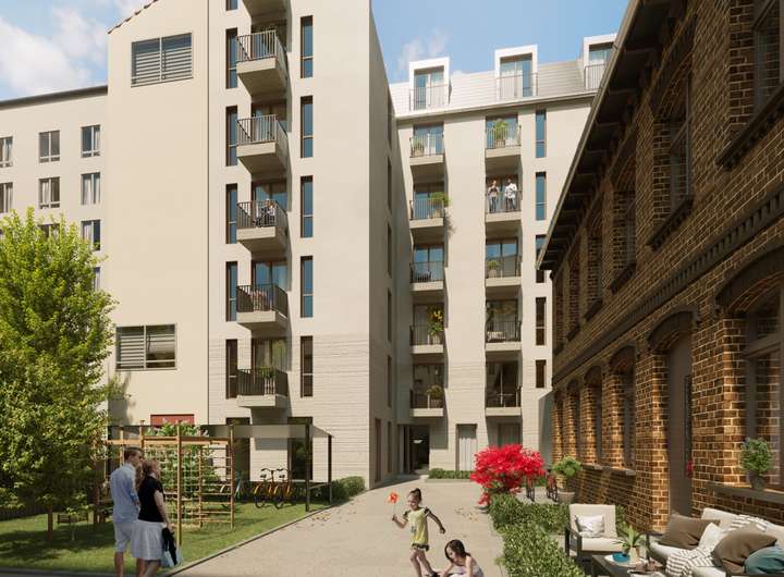 Insgesamt werden 50 Eigentumswohnungen mit flexiblen und offenen Grundrissen konzipiert sowie sechs Townhouses im wunderschönen Innenhof, fern ab vom Lärm des Tages.