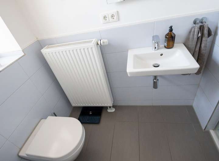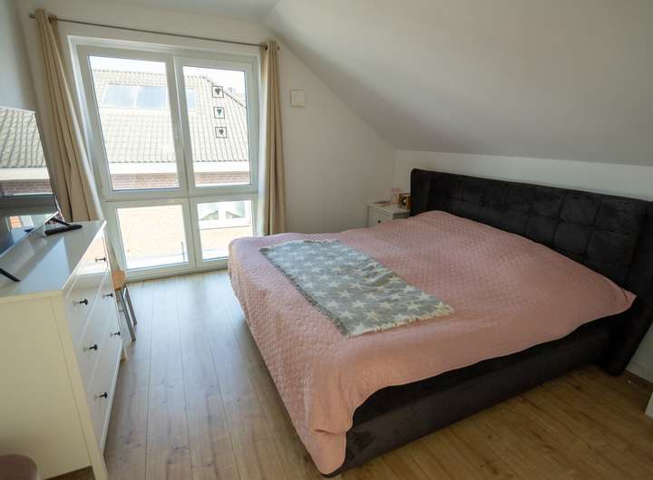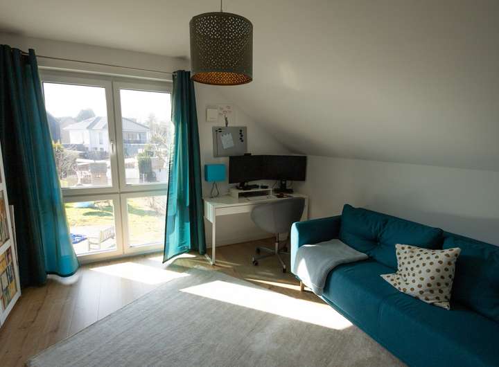 Alle Räume sind mit modernen Klimageräten von Daikin ausgestattet, die sowohl für Kühl- als auch Heizzwecke genutzt werden können und bequem per App steuerbar sind. Die Innenausstattung zeigt sich in einem hochwertigen Designkonzept: Hochwertiges Laminat in den Wohnräumen und hochwertige Keramikfliesen in den Nasszellen schaffen ein harmonisches Wohnambiente. Die Bäder sind mit bodentiefen Duschen ausgestattet; das Bad im Obergeschoss bietet zusätzlich eine große Wanne und ist mit Badinventar von Villeroy & Boch, Ausführung Subway 2.0, ausgestattet.