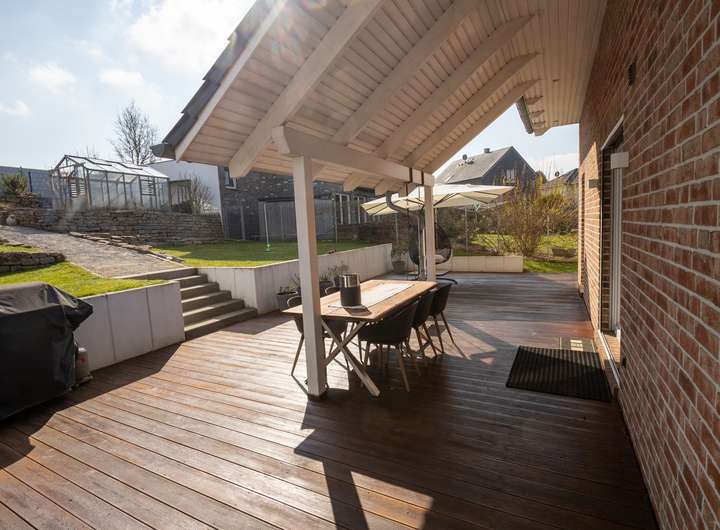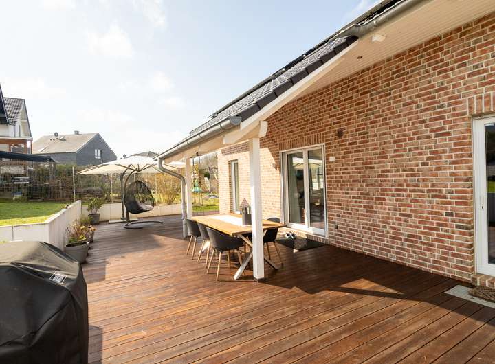 - großzügige überdachte Terrasse mit Echtholzdielen