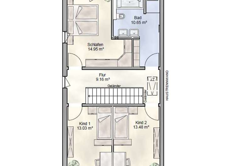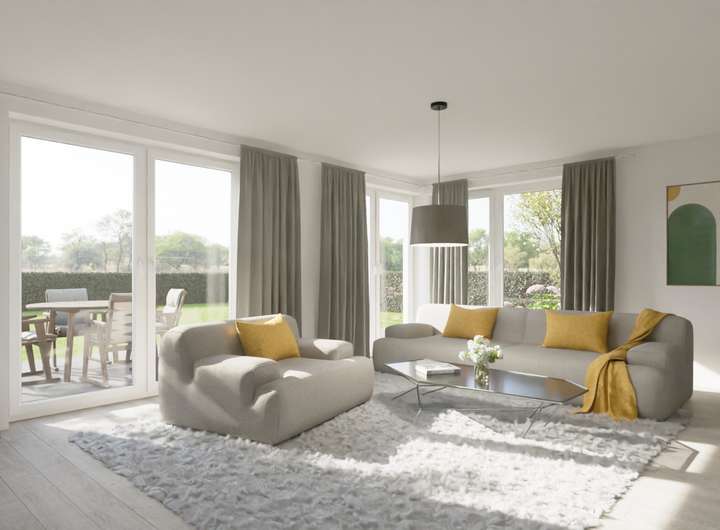 Die Doppelhaushälfte „Luzern“ überzeugt durch ein lichtdurchflutetes, offenes Wohnkonzept und eine klare, moderne Raumaufteilung, die hohen Wohnkomfort bietet.