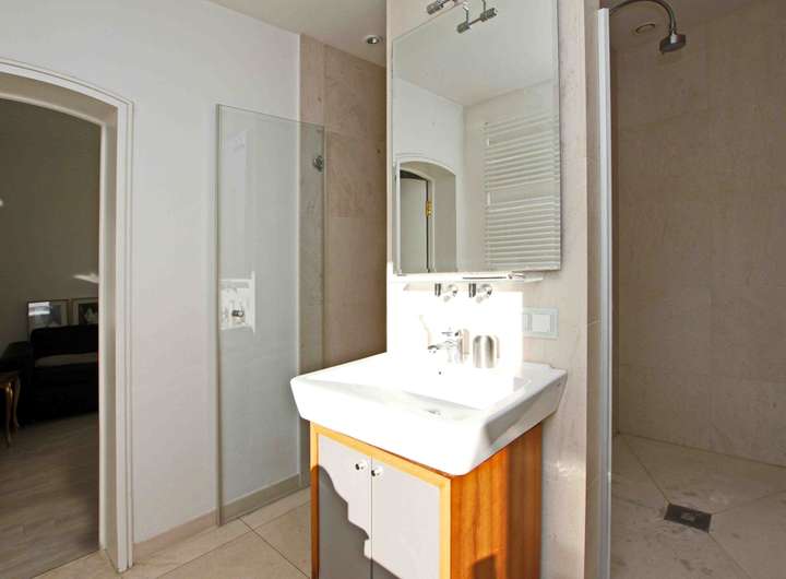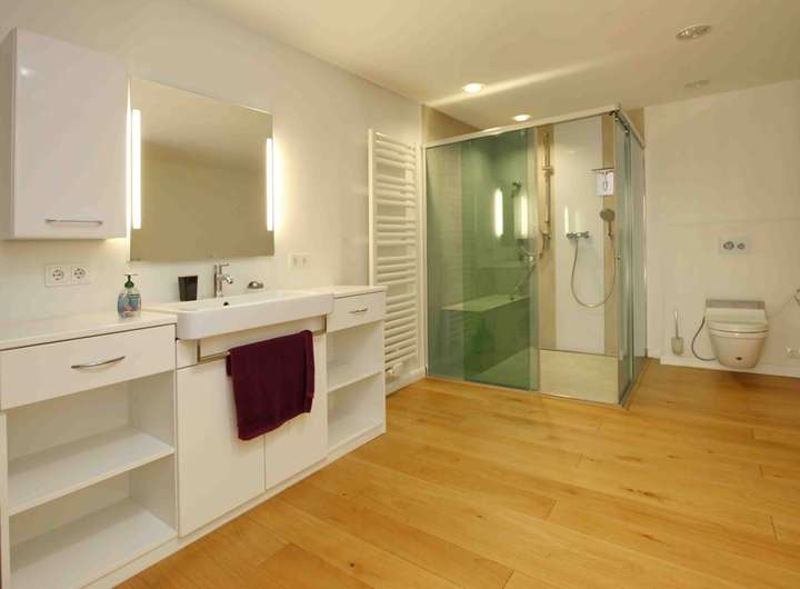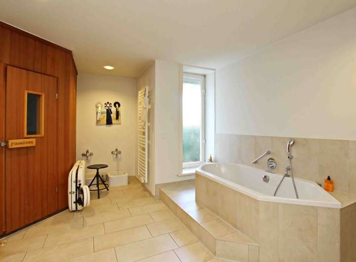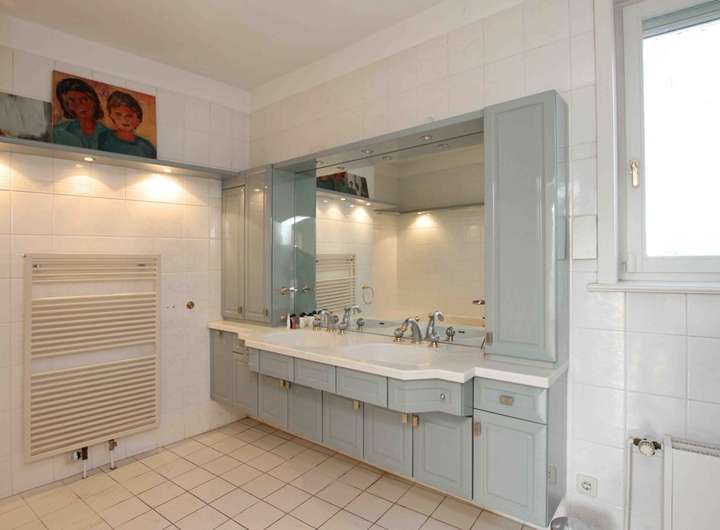 Insgesamt verfügt das Haus über sechs Badezimmer und zwei Gäste-WC's. Ein Bad in der Einliegerwohnung beinhaltet eine Sauna.