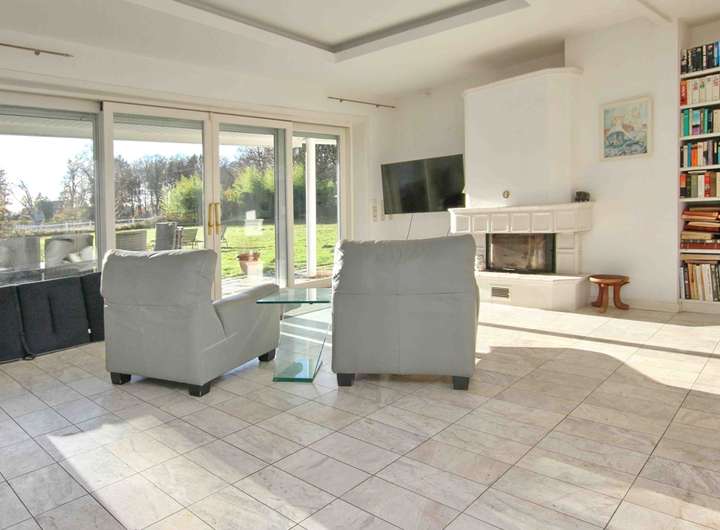 Insgesamt ist das Erdgeschoss sehr großzügig und mit großen Fensterfronten zum Garten und der angrenzenden Grünfläche ausgesprochen hell mit einem traumhaften Blick.