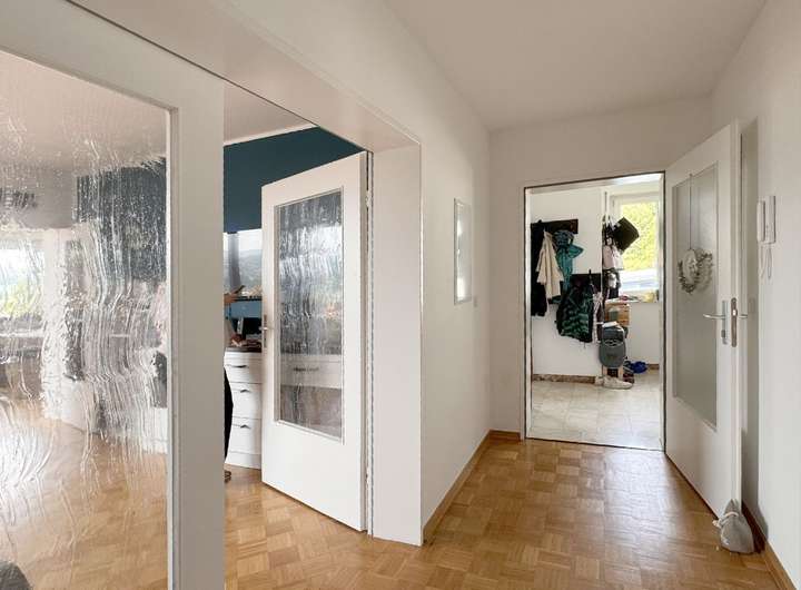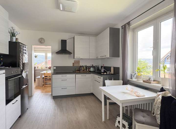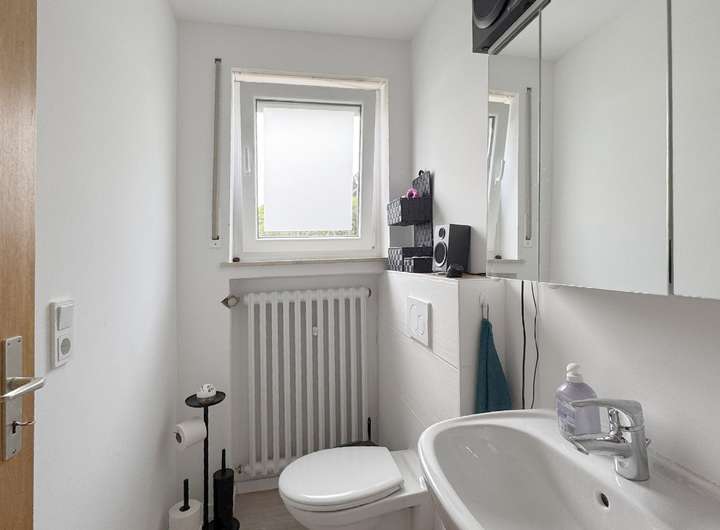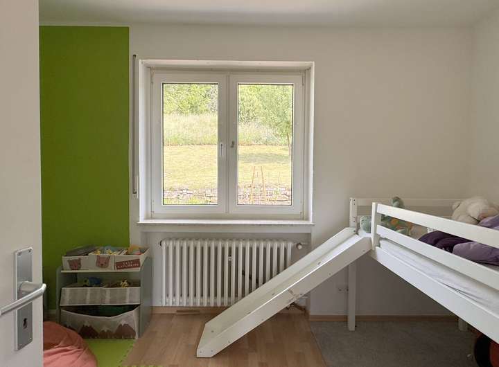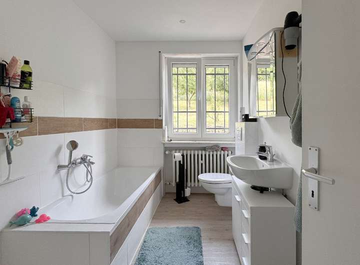 Große Wohnküche, Abstellraum, 2 kleinere (Kinder-)Zimmer, neues Tageslichtbad mit Badewanne und Dusche, Tageslicht-Gäste-WC.