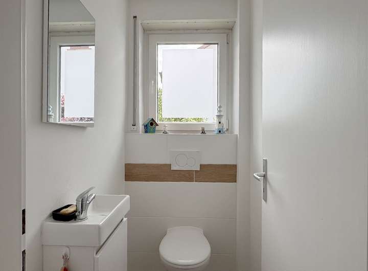 Das Haus wurde in Jahr 2020 saniert mit Erneuerung der Elektrik, der Bäder, Bodenbeläge und Malerarbeiten, Rollläden. Die Fenster sind aus den Jahren 2002, 2004, 2009 und 2022. Die oberste Geschoßdecke wird noch gedämmt (Auftrag erteilt).