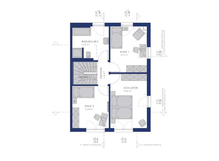 7,40 x 11,30 Metern. Im Erdgeschoss lädt es zu offenem Wohnen auf über 40 Quadratmetern ein und bietet Ihrer drei- bis