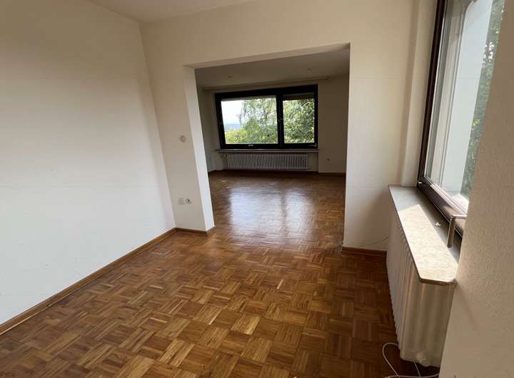 4 oder 5 Zimmer: ein ca. 28 m² großes Zimmer mit zwei Zugängen ist gut teilbar, ohne dass ein Durchgangszimmer entsteht. Offener Wohn- und Essbereich, vom Esszimmer aus direkter Zugang zu Terrasse und Garten.