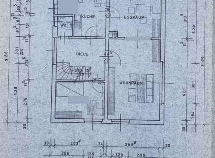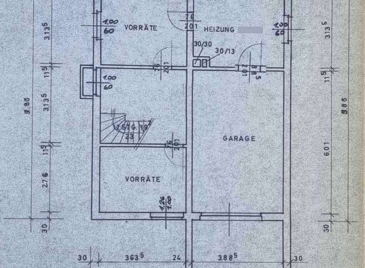 Das Haus ist vollständig unterkellert; Nutzfläche: ca. 68 m² (Keller/Souterrain, Garage) sowie Dachboden.