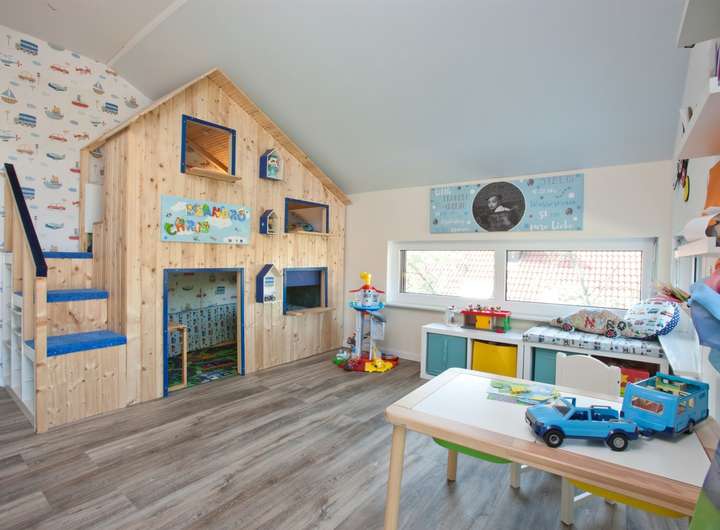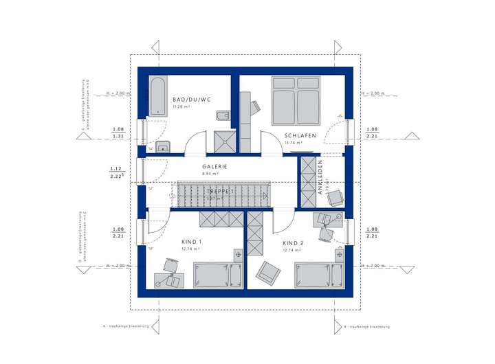 Willkommen im Evolution 136 - einem Haus, das Ihre Sehnsucht nach Geborgenheit und Stil erfüllt. Beim Betreten des großzügigen Eingangsbereichs spüren Sie sofort, dass hier ein besonderer Ort auf Sie wartet. Die separate Garderobe und das elegante Gäste-WC empfangen Sie mit praktischer Eleganz. Das angrenzende Büro bietet Raum für Kreativität und Konzentration. Der offene Wohn- und Essbereich mit der modernen, großzügigen Küche ist der Ort, an dem die Familie zusammenkommt, lacht und das Leben feiert. Zwei liebevoll gestaltete Kinderzimmer laden zum Träumen und Spielen ein, während das stilvolle Badezimmer mit Dusche und Badewanne Entspannung pur verspricht. Im Elternschlafzimmer mit eigener Ankleide finden Sie Ihren ganz persönlichen Rückzugsort - einen Ort der Ruhe und Harmonie. Das Evolution 136 ist mehr als nur ein Haus - es ist das Fundament, auf dem Sie unvergessliche Erinnerungen bauen. Hier wird aus einem Traum Ihr Zuhause.