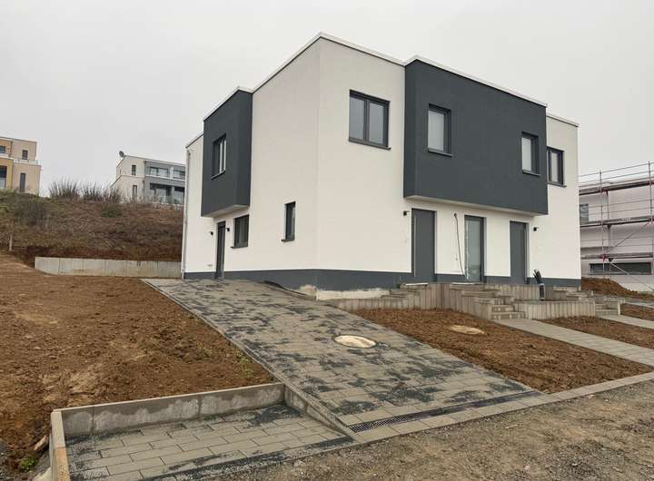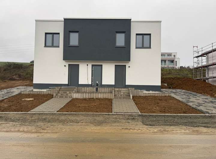 Dieses moderne Doppelhaus mit zwei separaten Wohneinheiten überzeugt durch einen durchdachten Grundriss, zeitgemäße Architektur und eine ruhige, familienfreundliche Lage im Neubaugebiet im Norden von Hermannstein.