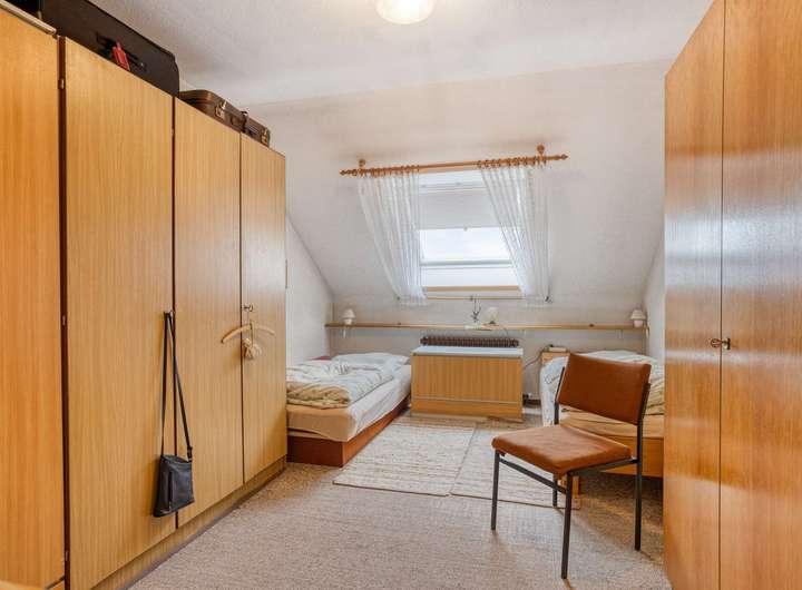 Hier befinden sich das Schlafzimmer, zwei Kinderzimmer sowie das sanierungsbedürftige Badezimmer. Die Raumaufteilung ist ideal für Familien und lässt sich bei Bedarf flexibel anpassen.