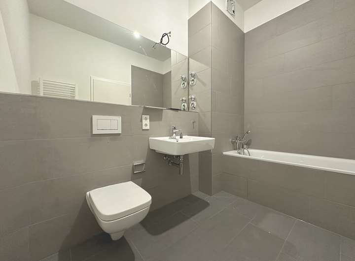 Innen überzeugen die Wohnungen mit angenehmen Grundrissen, die genügend Stauraum und ein Gefühl von Weite vereinen – nicht zuletzt durch die großen Fensterelemente, die für reichlich Tageslicht in Ihren Räumen sorgen. Die Bäder der neuen Wohnungen sind komplett ausgestattet. Mit Elementen und Armaturen namhafter Hersteller wie Kaldewei, Keramag und Hansgrohe starten Sie morgens entspannt in den Tag. Matte Fliesen in sanften Farbtönen machen die Badezimmer wohnlich. Jede Wohnung erhält eine Küchenzeile inklusive Spüle und Marken-Elektrogeräten, damit Sie von Anfang an gesund und lecker essen können. Alle Wohnungen werden über die angenehme Wärme einer Fußbodenheizung beheizt, die sich raumweise regulieren lässt. Neben Fliesen in Bad und Küche kommt in den frei finanzierten Wohnungen ein stilvoller Parkettboden zum Einsatz, in den mietpreisgedämpften Wohnungen wird ein hochwertiger Designfußboden verlegt. Das Wasser wird durch die zentrale Heizanlage erwärmt, die wie auch die Fußbodenheizung über Nahwärme betrieben wird.