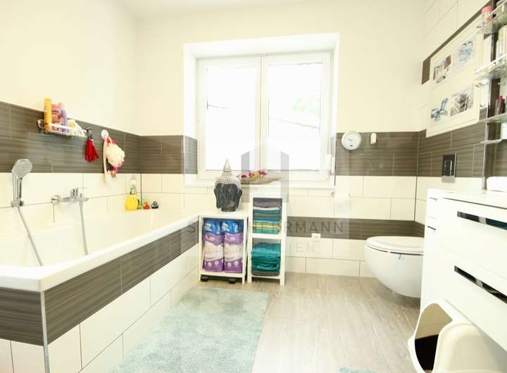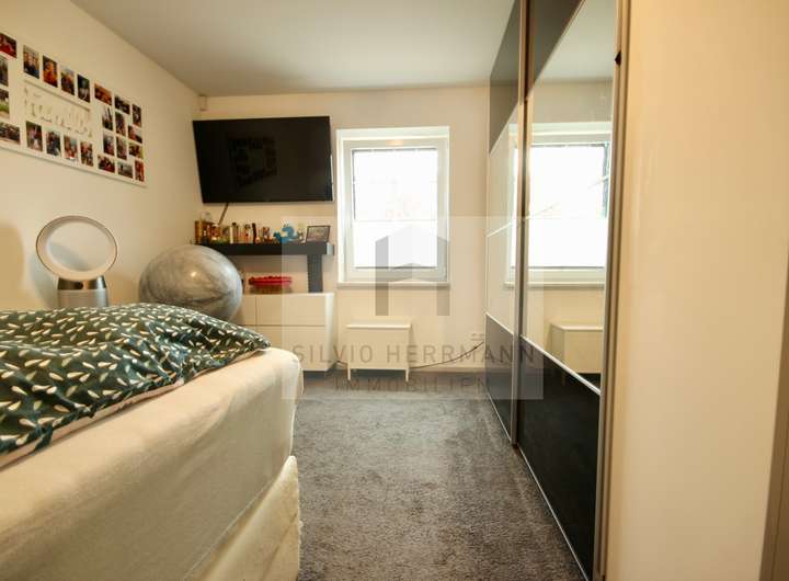 Weiterhin vorhanden sind ein Schlafzimmer und das Kinderzimmer. Moderne 3-fach verglaste Kunststofffenster, die großzügige Dachdämmung sowie die Fassadendämmung und die Solaranlage zur Warmwasseraufbereitung sorgen für niedrige Betriebskosten.