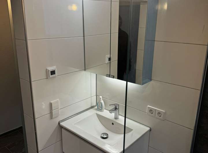 Im Bad (begehbare Dusche) wurde eine elektrische Fußbodenheizung eingebaut, die bei Bedarf eingeschaltet werden kann.