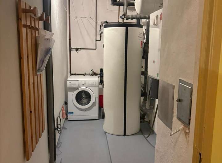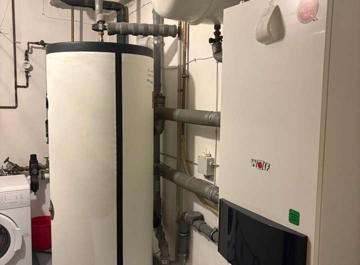 Im modernisierten Heizungsraum befindet sich eine Brennwertgasheizung mit 98,8 % Effizienz .