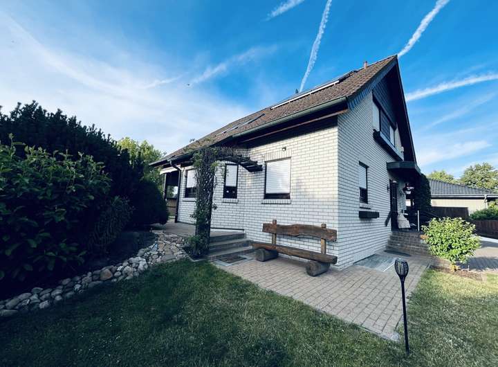 Die massiv gebaute Immobilie, Baujahr 1990, strahlt mit einem weißen Klinker und ruht in einer Sackgasse .