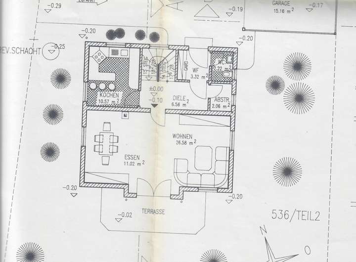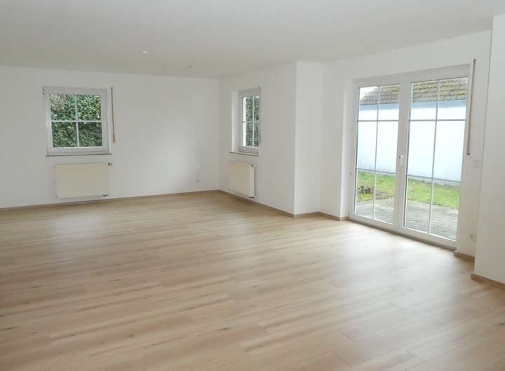 Im EG befindet sich ein großes, sonniges Wohn-Esszimmer, eine Küche, eine Speise, ein Gäste-WC und ein Windfang mit Garderobe. Vom Wohnzimmer gelangen Sie auf die nicht einsehbare Terrasse.
