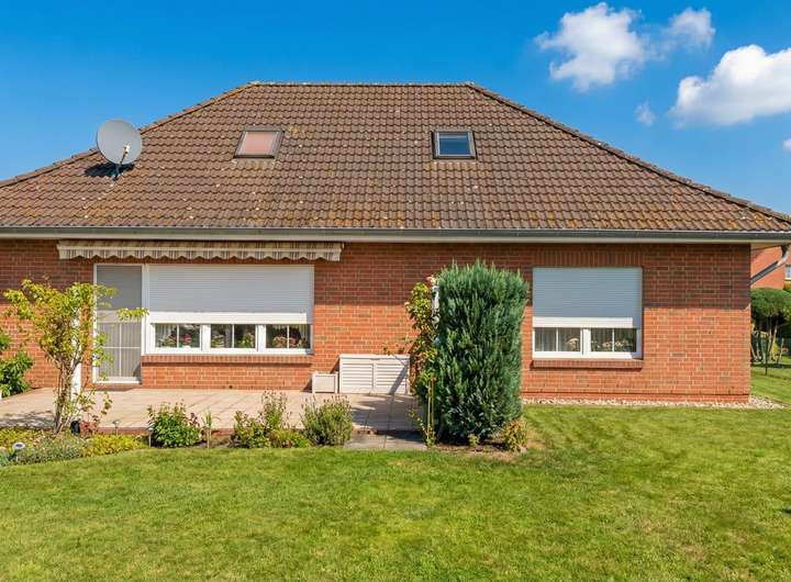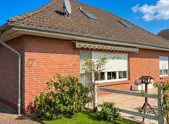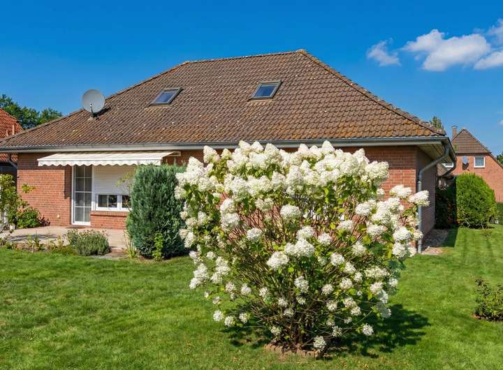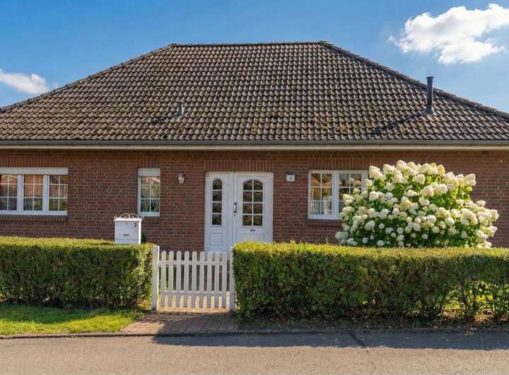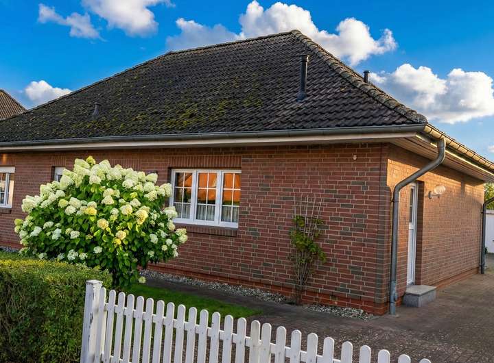 Zum Verkauf steht ein klassischer, massiver Rotklinker-Bungalow aus dem Baujahr 1996 in äußerst gepflegtem Zustand. Das Haus besticht durch seine solide Bauweise und den charmanten Landhaus-Stil mit weißen Sprossenfenstern (Kunststoff-Iso) und Friesenzaun.