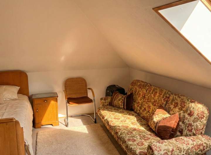 GROSSES POTENZIAL IM DACHGESCHOSS Das Erdgeschoss ist sofort bezugsfertig, doch das Haus bietet noch mehr. Im Dachgeschoss schlummert eine wertvolle Ausbaureserve. Da eine hochwertige Holztreppe und Dachfenster bereits vorhanden sind, können Sie die Wohnfläche hier mit überschaubarem Aufwand deutlich erweitern – sei es für Kinderzimmer, ein Büro oder ein Studio.
