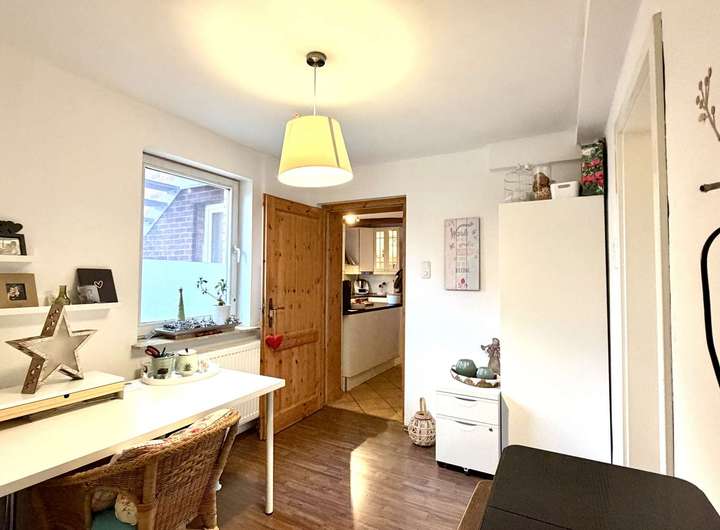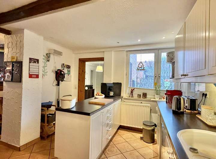 Küche : Die großzügig bemessene Wohnküche bietet ausreichend Platz für ein angenehmes Zusammensein. Die Raumaufteilung ist funktional gestaltet und vielseitig nutzbar. Durch die zentrale Anordnung sind Bereiche des Hauses direkt von der Küche aus erreichbar. Hierzu zählen u.a. das Büro, das Badezimmer mit separatem WC, der Hauswirtschaftsraum sowie dem Keller.