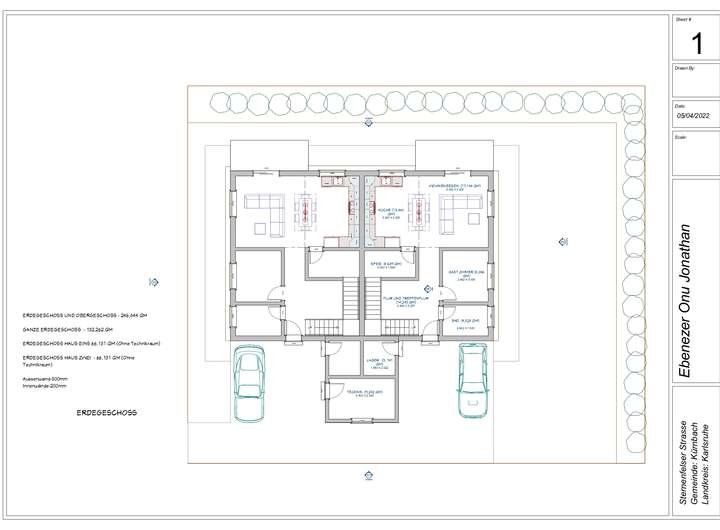 Geplant ist ein Zweifamilienhaus in Doppelhaushälften-Bauweise, bei dem jede Haushälfte über ca. 150 m² Wohnfläche verfügt und sich über zwei Geschosse erstreckt. Diese Aufteilung macht das Projekt ideal für Familien, Mehrgenerationenwohnen oder Kapitalanleger.