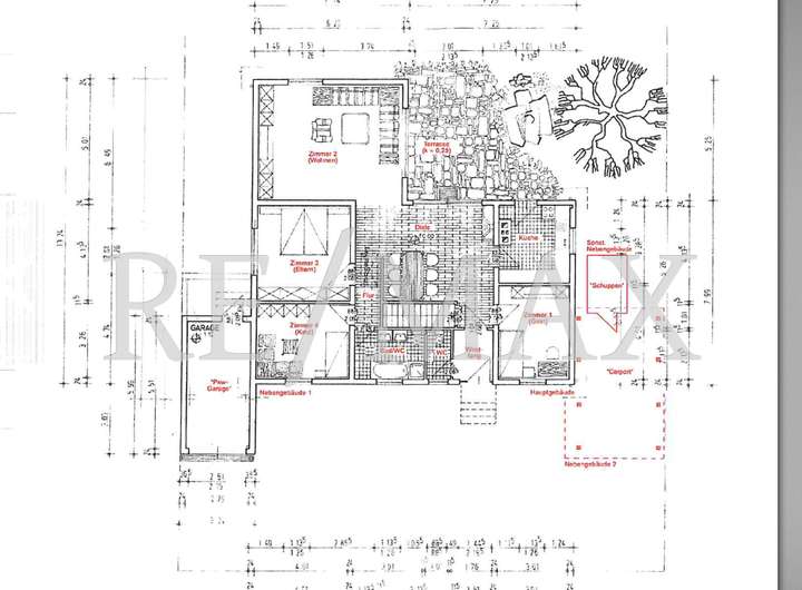 Zum Außenbereich gehören eine separate Garage (ca. 17 m²), ein Carport (ca. 24m²) mit Wallbox für E-Autos, sowie ein Geräteschuppen – Gartengeräte stehen Ihnen zur Nutzung zur Verfügung.