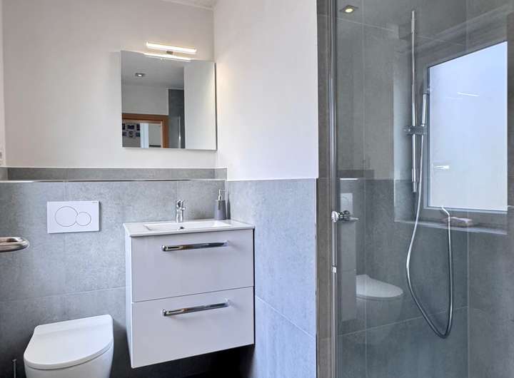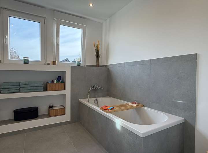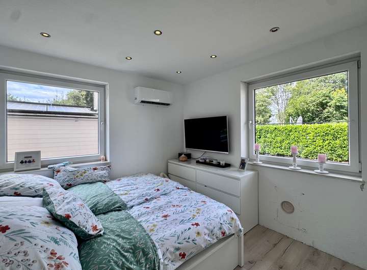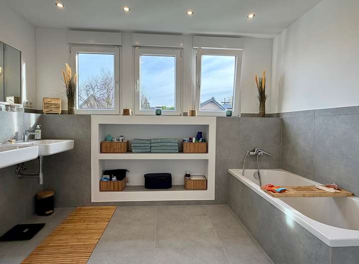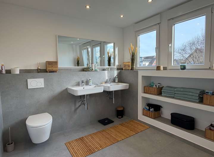 Das Haus überzeugt durch seine energieeffiziente Heiz- und Haustechnik. Die Kombination aus Wärmepumpe, Tiefenbohrung, Photovoltaikanlage und Fußbodenheizung im gesamten Haus sorgt für niedrige Betriebskosten und ein angenehmes Raumklima. Durch den hohen Eigenverbrauch des selbst erzeugten Stroms lassen sich die laufenden Energiekosten deutlich reduzieren. Die Warmwasseraufbereitung erfolgt bedarfsgerecht und wird erst beim Nutzen erhitzt – das ist hygienisch und energieeffizient zugleich.