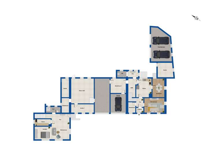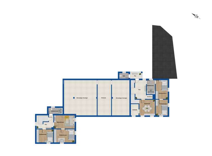Zum Verkauf steht ein vielseitiges Anwesen mit großem Entwicklungspotenzial. Das Ensemble besteht aus einem sanierungsbedürftigen Bauernhaus (ca. 140 m²), einer großzügigen Scheune, einer Doppelgarage sowie einem zweiten Wohnhaus mit ausbaufähigem Obergeschoss.