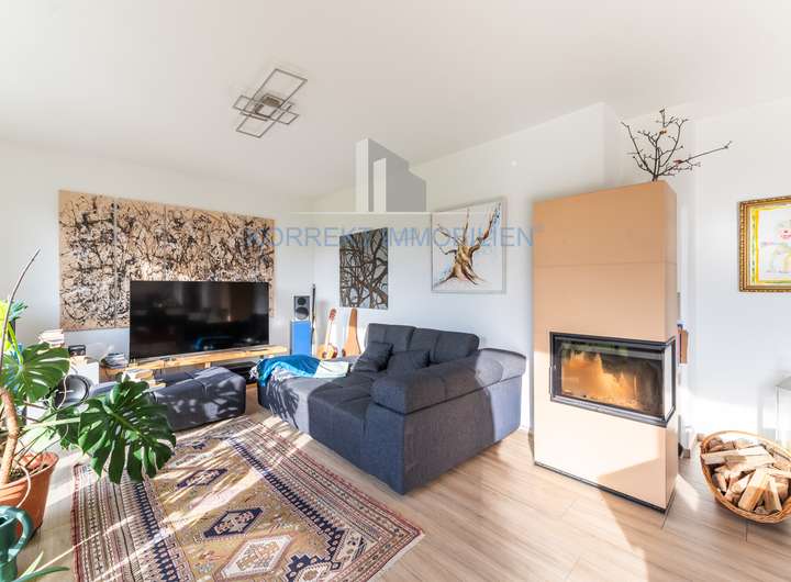 Die Immobilie verfügt über zwei modern und hochwertig ausgestattete Bäder sowie einen großzügigen Wohn- und Essbereich, der mit einem gemütlichen Kamin besticht. Eine erstklassige Einbauküche mit Geräten von Bosch und Miele lädt zum kulinarischen Vergnügen ein. Die elektrischen Tor- und Zaunanlagen bieten zusätzlichen Komfort und Sicherheit.